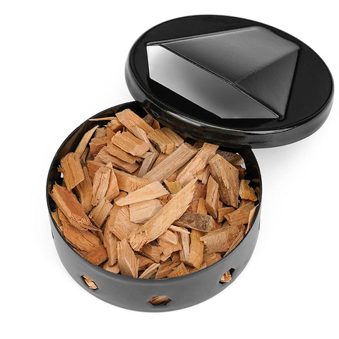Professional round Wood Chip Smoker Box for Grills Black-Coated Steel Material Single Product